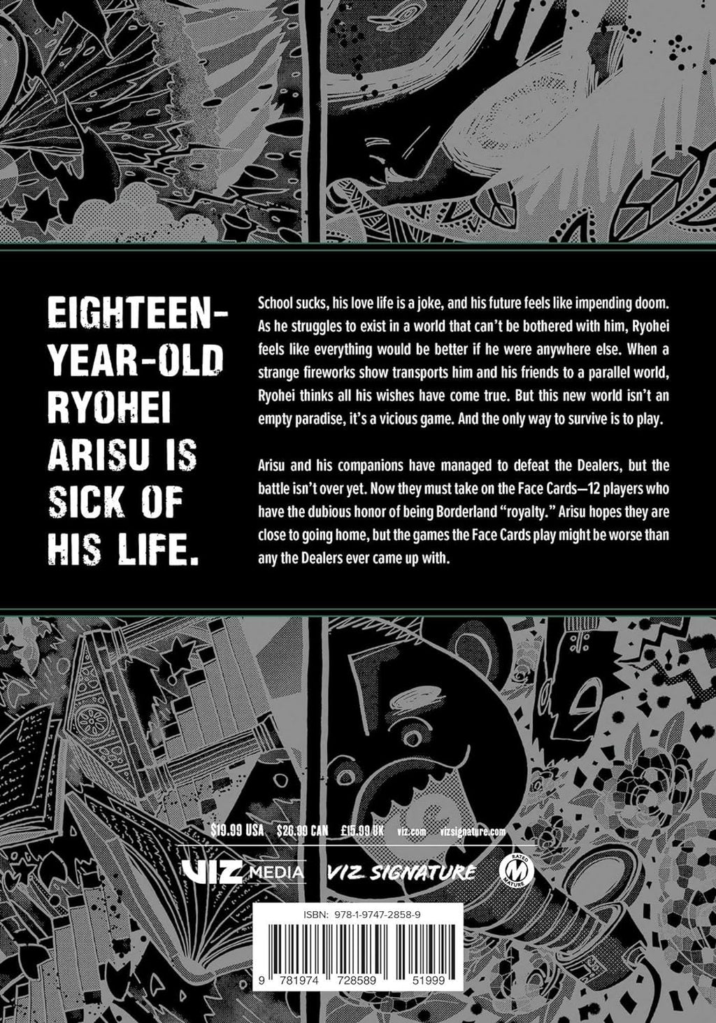Arisu and his companions have managed to defeat the Dealers, but the battle isn’t over yet. Now they must take on the Face Cards—12 players who have the dubious honor of being Borderland “royalty.” Arisu hopes they are close to going home, but the games the Face Cards play might be worse than any of the cruelties the Dealers came up with.
