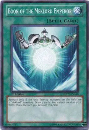 Activate only if the only face-up monsters on the field are 2 Meklord monsters. Draw 2 cards. You cannot conduct your Battle Phase the turn you activate this card.