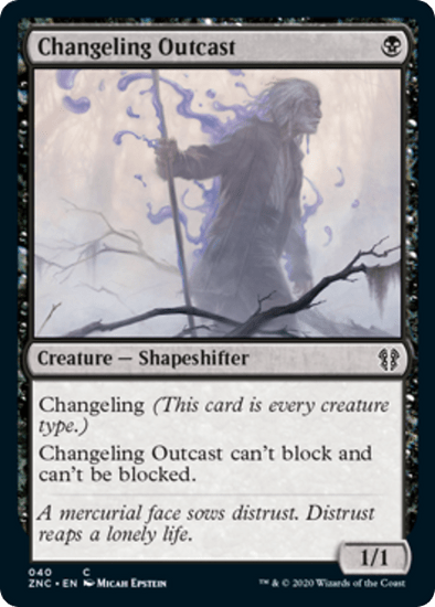 Changeling(This card is every creature type.) Changeling Outcast can't block and can't be blocked.