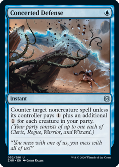 Counter target noncreature spell unless its controller pays 1 plus an additional 1 for each creature in your party. (Your party consists of up to one each of Cleric, Rogue, Warrior, and Wizard.)