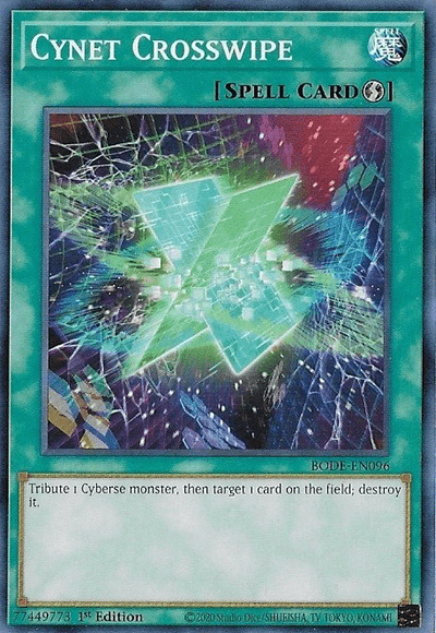 • Tribute 1 Cyberse monster, then target 1 card on the field; destroy it.