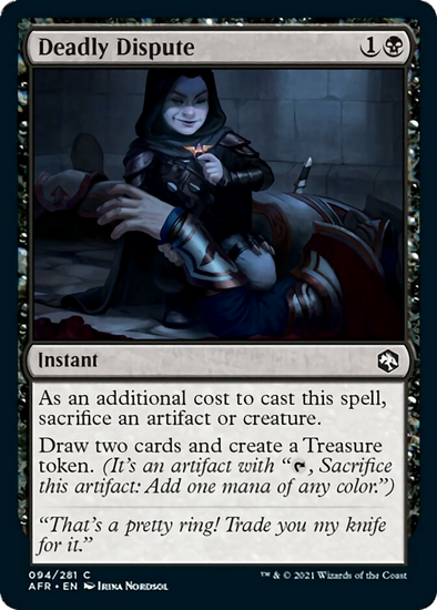 Draw two cards and create a Treasure token. (It's an artifact with "T, Sacrifice this artifact: Add one mana of any color."