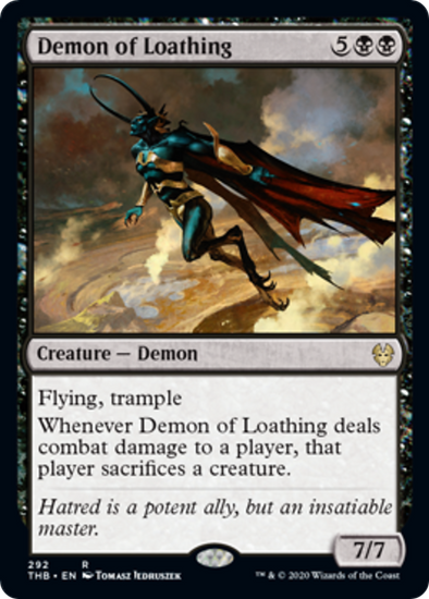 Whenever Demon of Loathing deals combat damage to a player, that player sacrifices a creature.