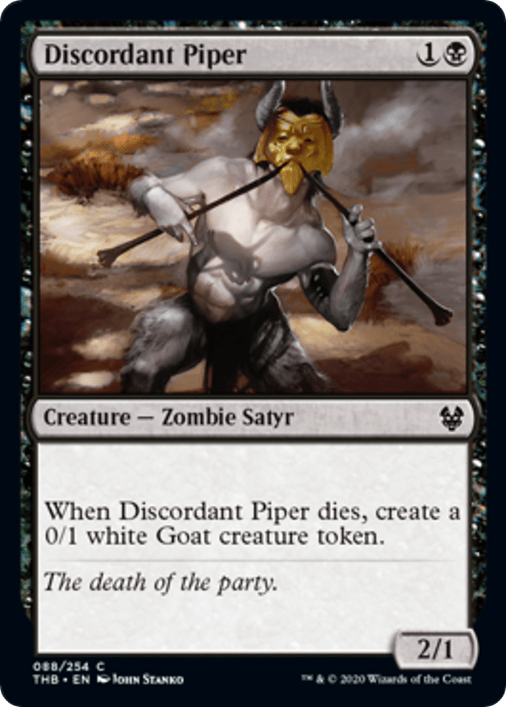 When Discordant Piper dies, create a 0/1 white Goat creature token.