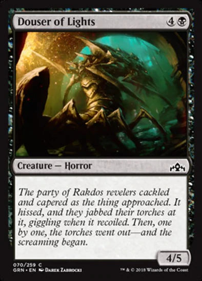 - Flavor: The party of Rakdos revelers cackled and capered as the thing approached. It hissed, and they jabbed their torches at it, giggling when it recoiled. Then, one by one, the torches went out—and the screaming began.