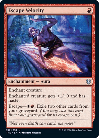 Escape—1R, Exile two other cards from your graveyard. (You may cast this card from your graveyard for its escape cost.)