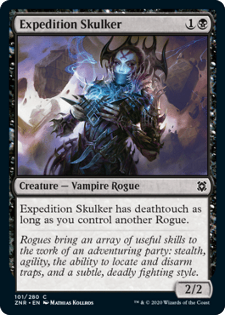Expedition Skulker has deathtouch as long as you control another Rogue.
