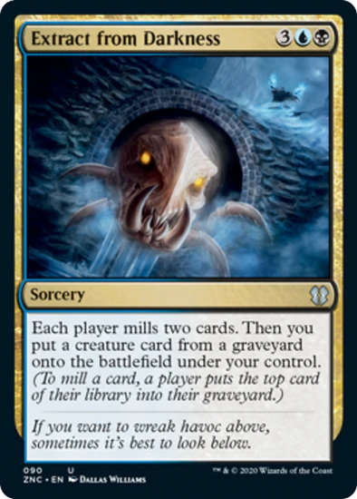 Each player mills two cards. Then put a creature card from a graveyard onto the battlefield under your control.