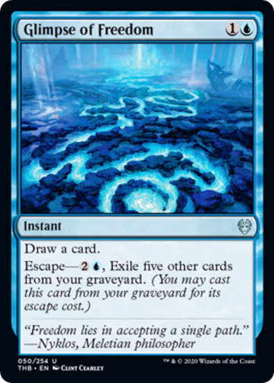 Escape—2U, Exile five other cards from your graveyard. (You may cast this card from your graveyard for its escape cost.)