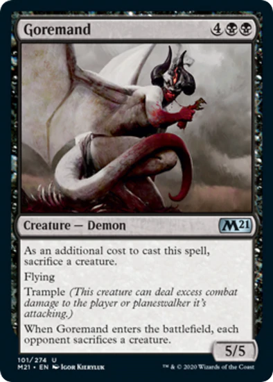 When Goremand enters the battlefield, each opponent sacrifices a creature.