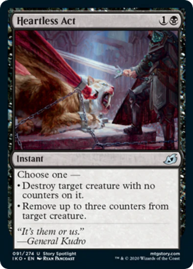 Choose one — • Destroy target creature with no counters on it. • Remove up to three counters from target creature.