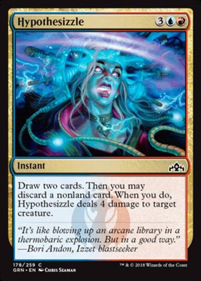 Draw two cards. Then you may discard a nonland card. When you do, Hypothesizzle deals 4 damage to target creature.