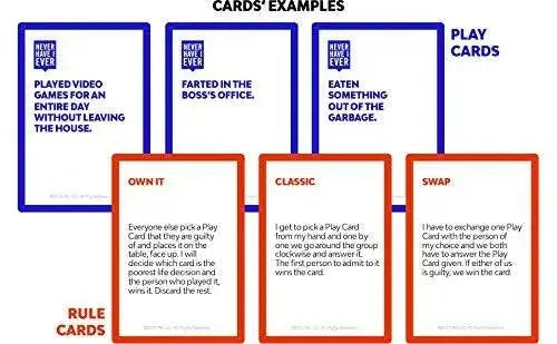 Ever crack up thinking, “why did I DO that?” Of course you have! Ever wish you could be rewarded for the most ludicrous decisions you’ve ever made? Well... now’s your chance! Never Have I Ever is the ultimate party game for laughing with friends about the crazy lives you’ve lived. Just deal the cards, answer the questions, and toast to your friends being just as nutty as you are!