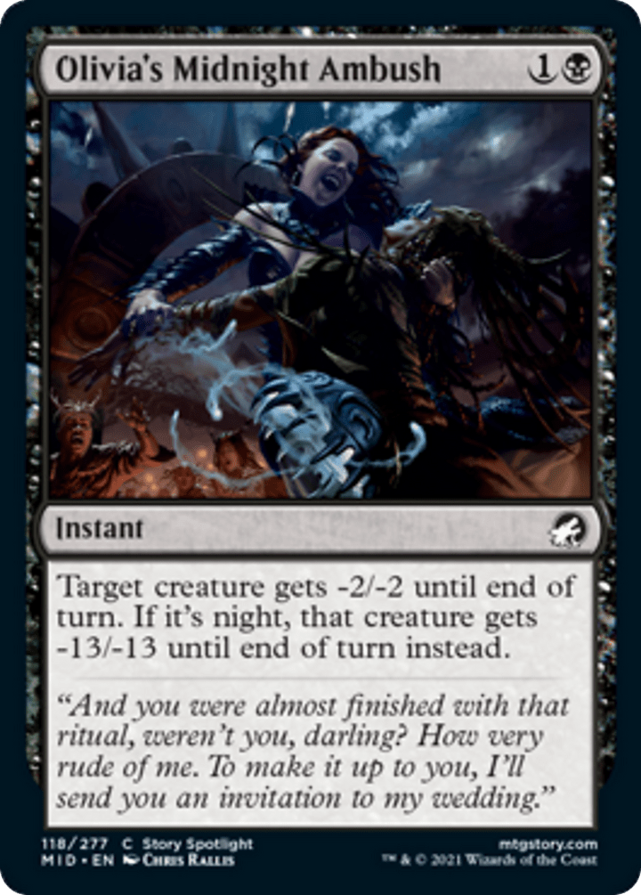 Target creature gets -2/-2 until end of turn. If it's night, that creature gets -13/-13 until end of turn instead.