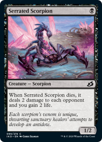 When Serrated Scorpion dies, it deals 2 damage to each opponent and you gain 2 life.