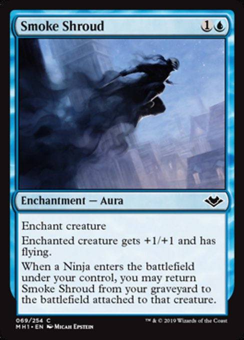When a Ninja enters the battlefield under your control, you may return Smoke Shroud from your graveyard to the battlefield attached to that creature.
