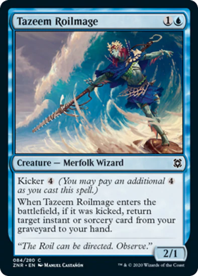 When Tazeem Roilmage enters the battlefield, if it was kicked, return target instant or sorcery card from your graveyard to your hand.