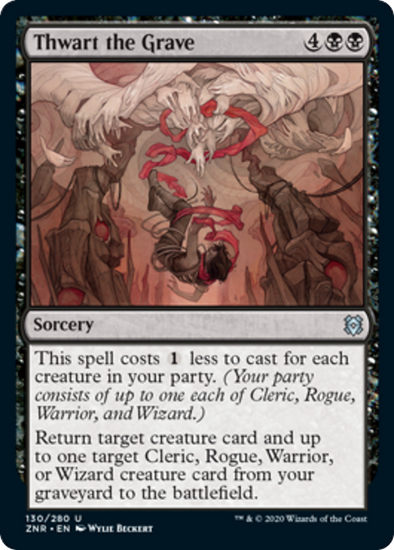 Return target creature card and up to one target Cleric, Rogue, Warrior, or Wizard creature card from your graveyard to the battlefield.