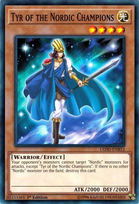Your opponent's monsters cannot target "Nordic" monsters for attacks, except "Tyr of the Nordic Champions". If there is no other "Nordic" monster on the field, destroy this card.