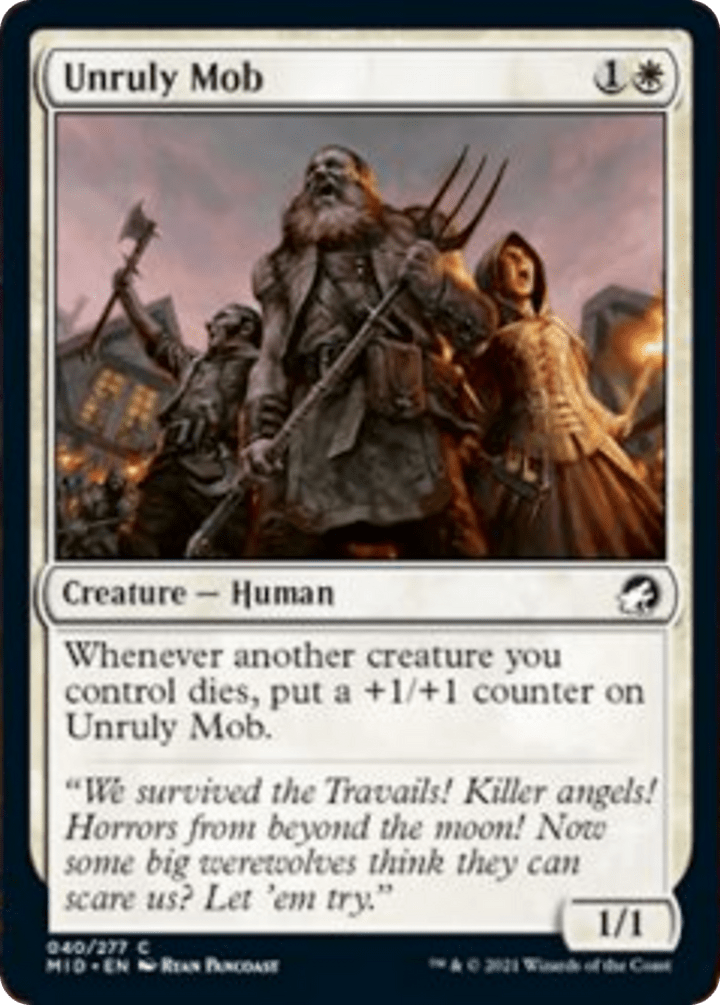 Whenever another creature you control dies, put a +1/+1 counter on Unruly Mob.