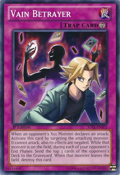 When an opponent's Xyz Monster declares an attack: Activate this card by targeting the attacking monster. It cannot attack, also its effects are negated. While that monster is on the field, during each of your opponent's End Phases: Send the top 3 cards of your opponent's Deck to the Graveyard. When that monster leaves the field, destroy this card.