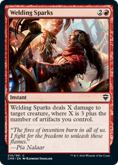 Welding Sparks deal X damage to target creature, where X is 3 plus the number of artifacts you control.
